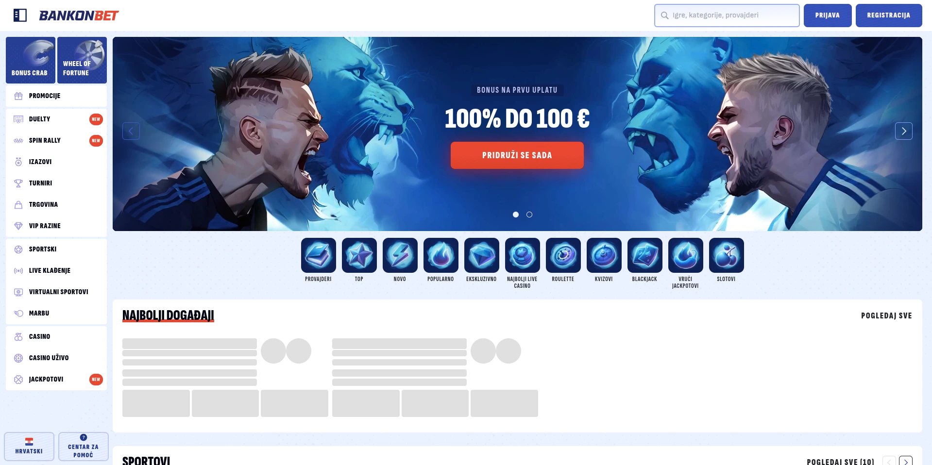 Sekcija online casina na BankonBet odmah impresionira svojom raznovrsnošću i kvalitetom igara. Slotovi dolaze od renomiranih provajdera, od klasičnih do najnovijih video slotova s bonus funkcijama i progresivnim jackpotom, a sve igre se brzo učitavaju i imaju modernu grafiku.