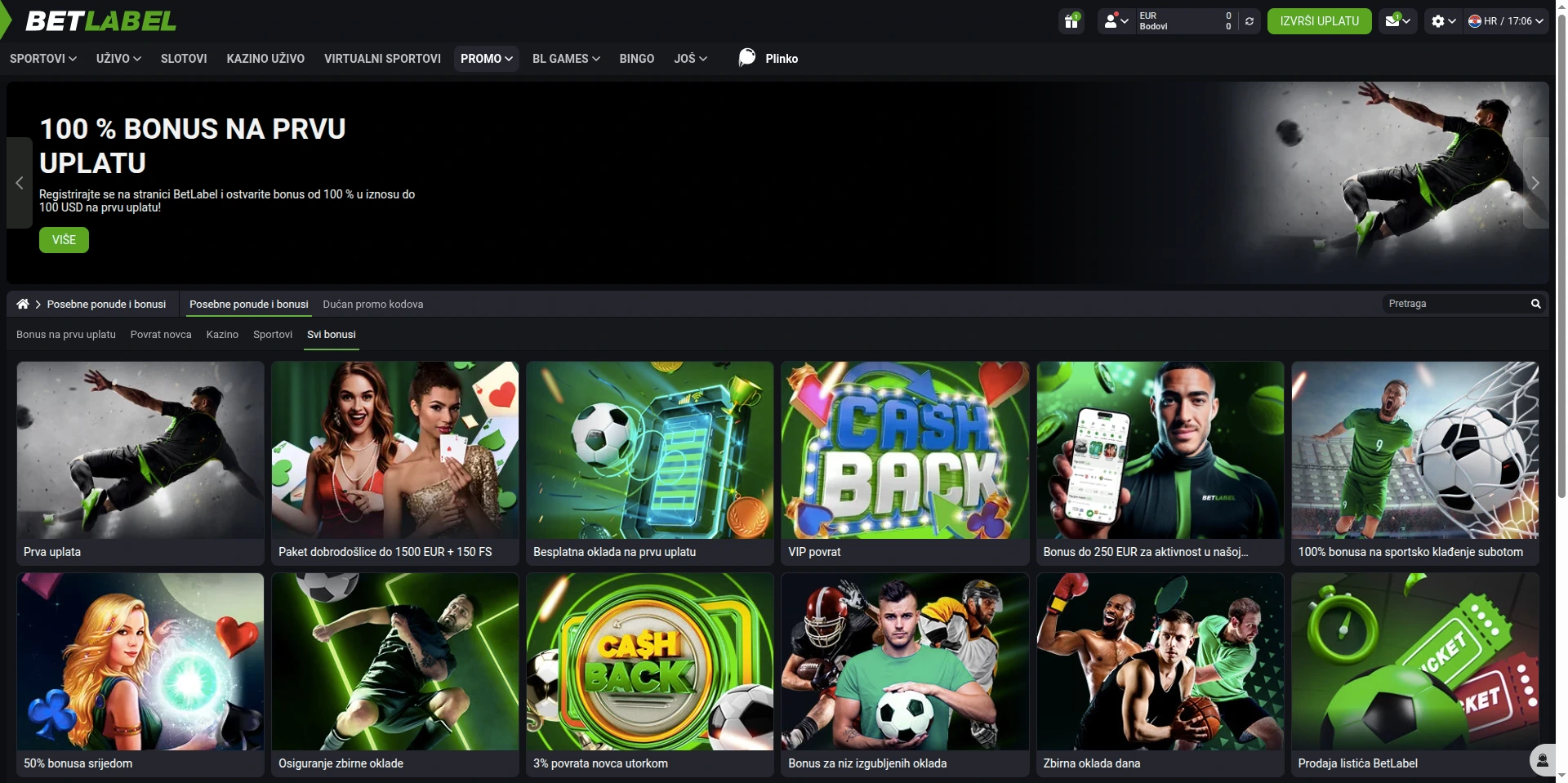 Jedan od glavnih razloga zbog kojih BetLabel brzo osvaja srca igrača jesu njihovi atraktivni bonusi i promocije. Ako igraš na EUR računu (Hrvatska / Srbija / BiH / Crna Gora), BetLabel u praksi vrti isti “set” promocija, samo što se limiti i dostupnost mogu razlikovati po zemlji i verziji sajta. Ovo su bonusi koje sam vidio kao glavne stavke (i koje se najčešće nude upravo za EUR tržišta):