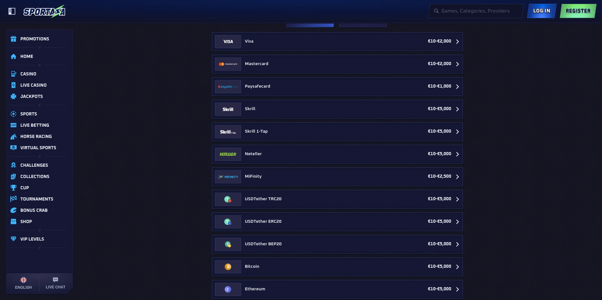 Sportaza nudi veoma širok spektar opcija za uplatu i isplatu, što mi je posebno važno jer preferiram fleksibilnost kada je riječ o finansijskim transakcijama. Na raspolaganju su klasične metode kao što su Visa i Mastercard, što mi je odlično. Također, mogu se koristiti i e-novčanici kao Skrill i Neteller, koji omogućavaju brže transakcije obično se uplata odmah pojavljuje na računu, a isplate su dostupne u roku od nekoliko sati. Ono što me posebno privuklo kod Sportaze jeste mogućnost korištenja kriptovaluta, uključujući Bitcoin. Ova opcija zaista dodaje novu dimenziju sigurnosti i fleksibilnosti pri transakcijama. Korištenje kriptovaluta omogućava anonimnije transakcije, što mi se izuzetno dopada jer se u današnje vrijeme privatnost sve više cijeni. Mnoge banke danas često blokiraju uplate na sajtove za klađenje ili jednostavno ne dozvoljavaju raspolaganje i upravljanje osobnim sredstvima, što može biti frustrirajuće za korisnike. Upravo ta mogućnost upravljanja osobnim sredstvima, bez uplitanja banaka, zaista je veliki plus kada se koristi Bitcoin na platformama poput Sportaze. Zahvaljujući kriptovalutama, transakcije su brže, sigurnije i izbjegavaju nepotrebna ograničenja koja banke često nameću. Također, minimalni iznos depozita je vrlo pristupačan, što dodatno olakšava početak igranja.