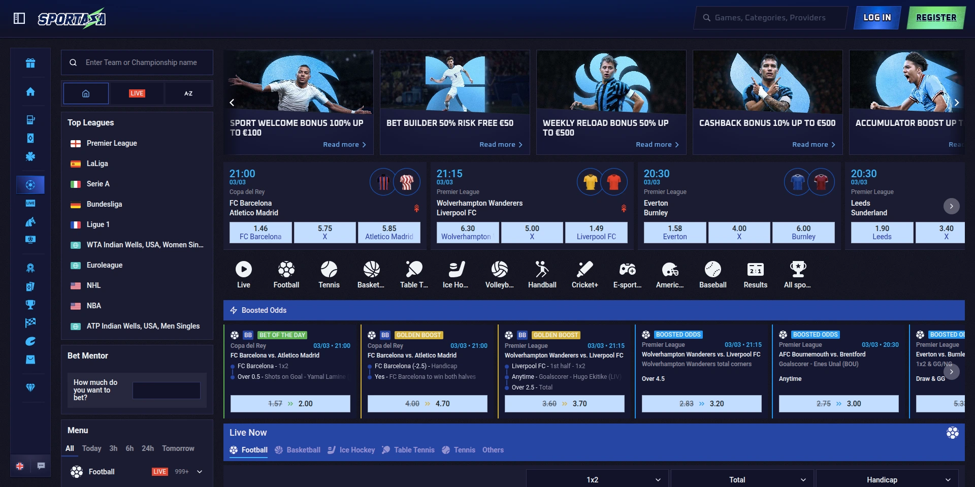 Sportaza nudi bogatstvo bonusa za sportsko klađenje i kazino igrače, čineći ga privlačnim izborom za nove korisnike. Ključna promocija je bonus na prvi depozit od 100% do 100 €, dostupna sa minimalnim depozitom od 20 €. Uz to, platforma nudi cashback bonuse za razne sportove, promocije za live klađenje i povremene bonuse za kazino igre, uključujući live kazino opcije. Prije preuzimanja bonusa važno je pregledati uvjete promocije, a sve opcije su dostupne na stranici za promocije Sportaza sajta