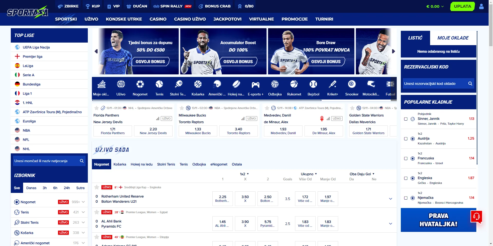 Sportaza kladionica nudi bogatu i raznovrsnu ponudu za klađenje koja zadovoljava potrebe svih tipova igrača. Bez obzira da li ste početnik ili iskusni kladioničar, na ovom sajtu ćete pronaći širok spektar sportova i tržišta na kojima možete staviti opkladu.